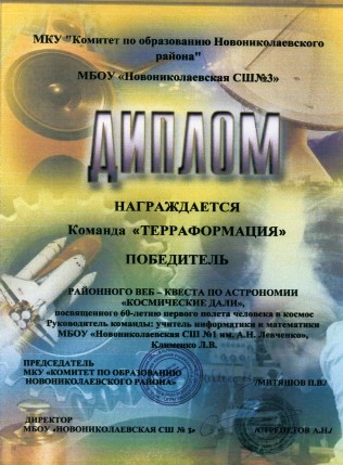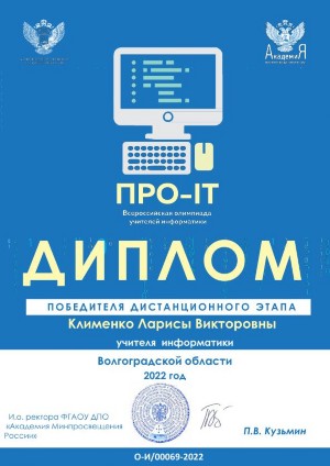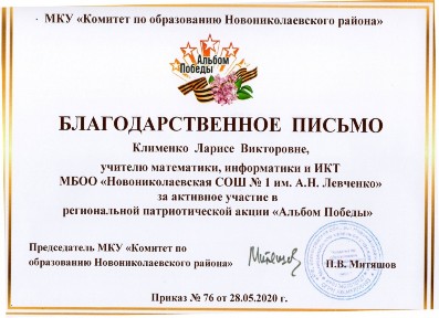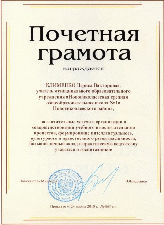 Персональный сайтКлименко Ларисы Викторовны,учителя математики, информатики МБОУ "Новониколаевская СШ№1"